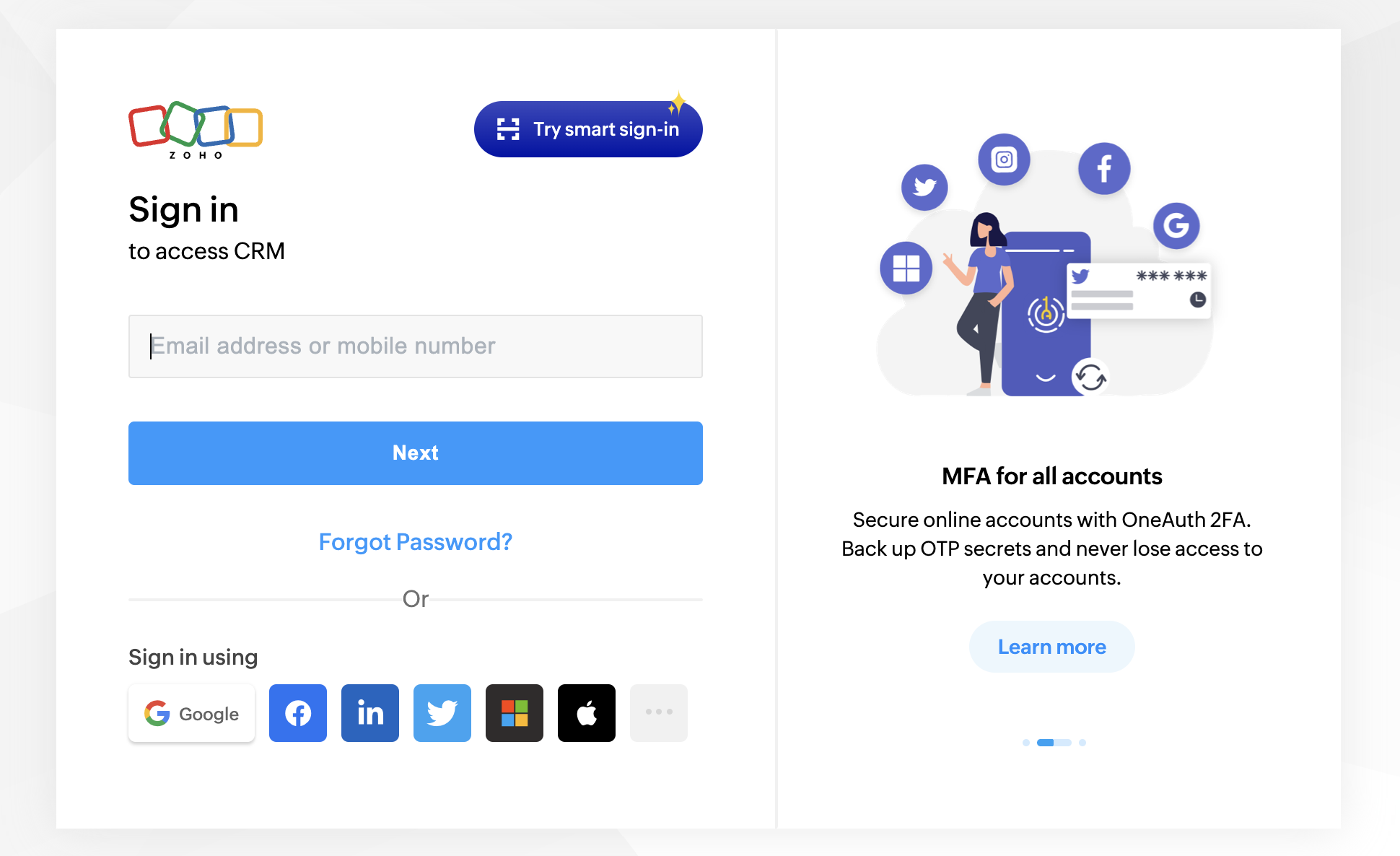 On the next page, log in to your Zoho CRM account.