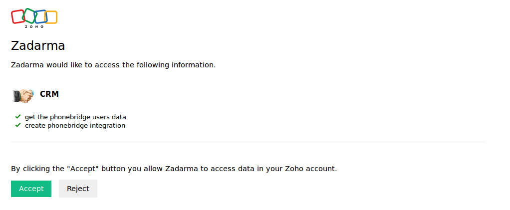 Click “Accept” to accept the user access request to Zoho CRM.