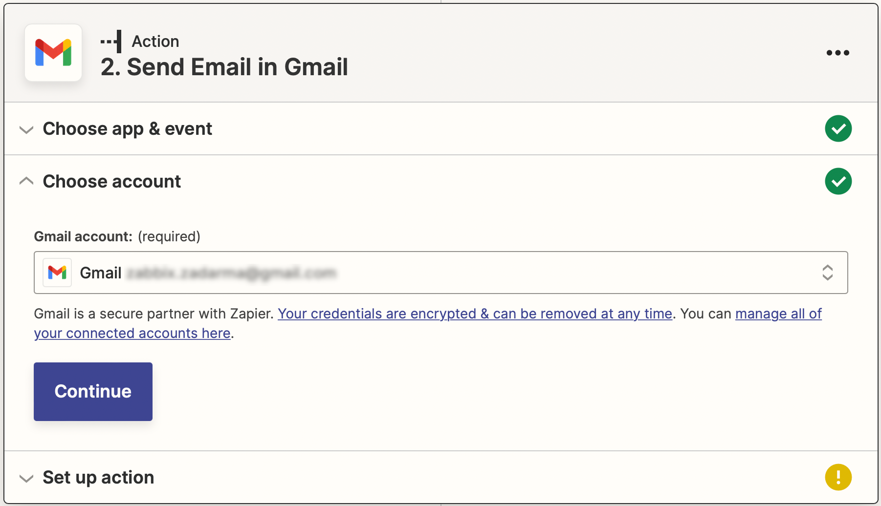 9. On the next page, sign in to your Gmail account from which the email will be sent and click Continue.