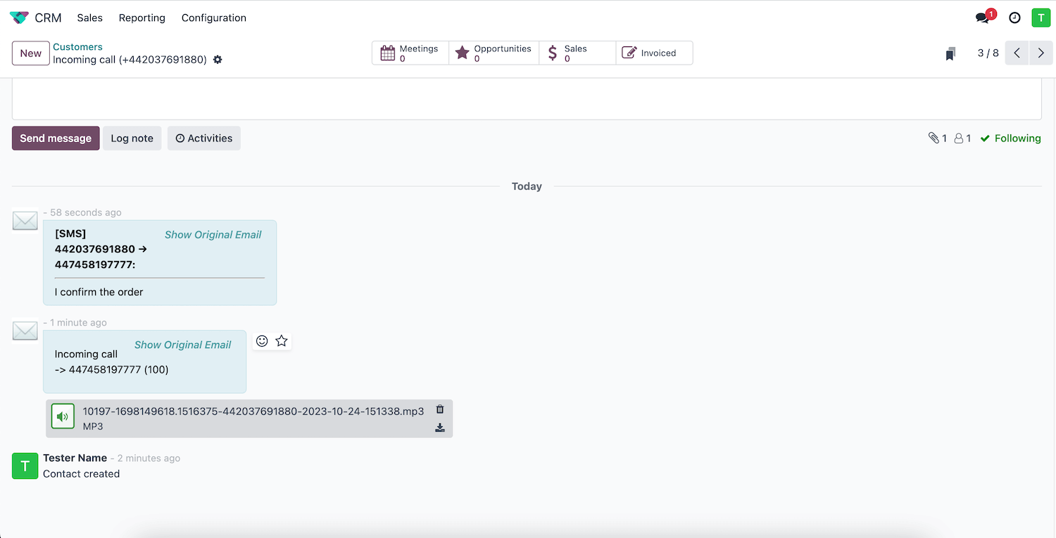 The call information, its recording and incoming SMS will be added to the customer's record.