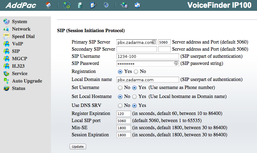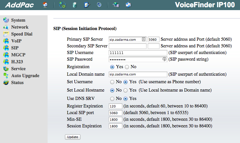 SIP Password: Your sip-number password from "SIP Connection" in personal account.