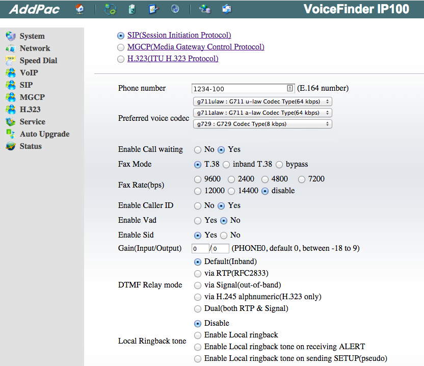 2. Under the tab "SIP" (Session Initiation Protocol).
