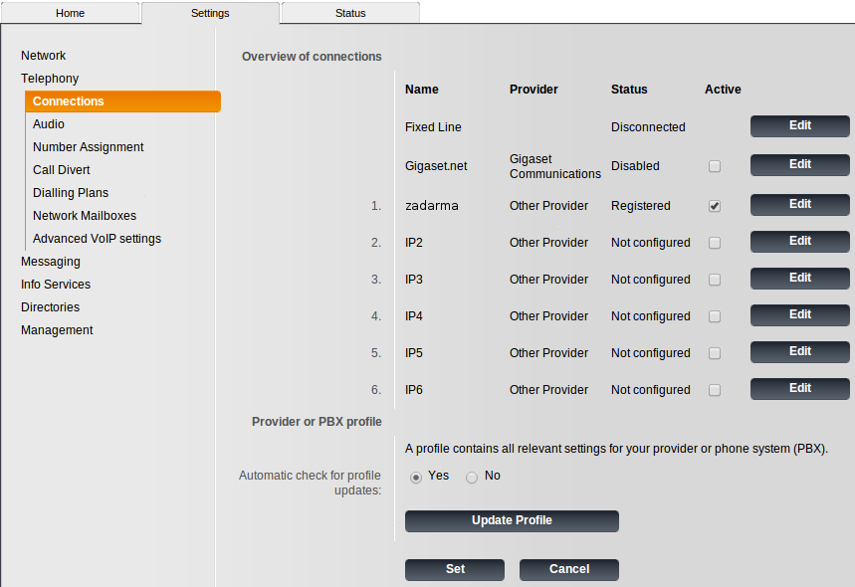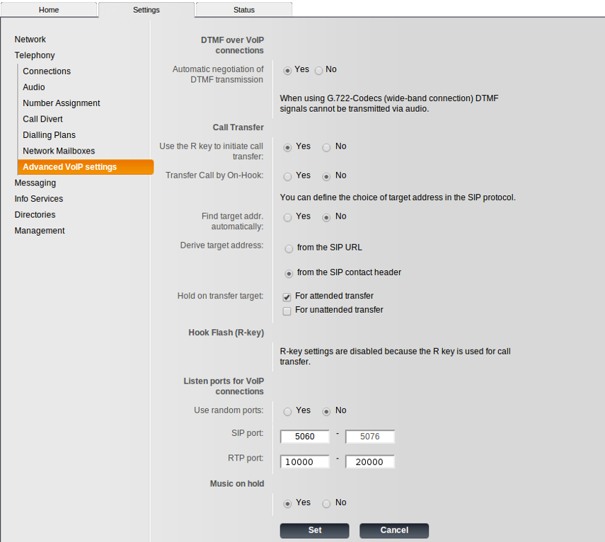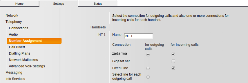 On this page you can set the device's default route for outgoing calls (via VoIP or landline)