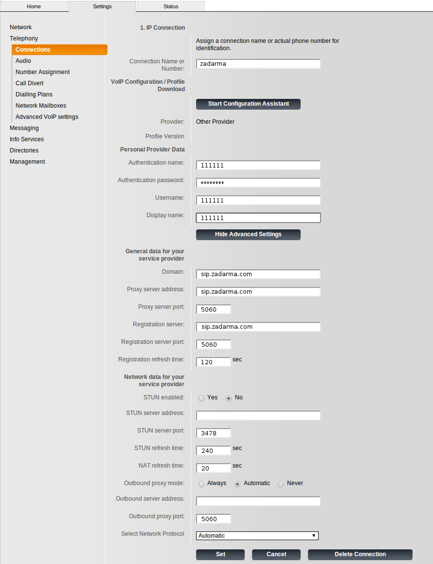 Password: Your password of sip number from "SIP Connection" in personal account.
