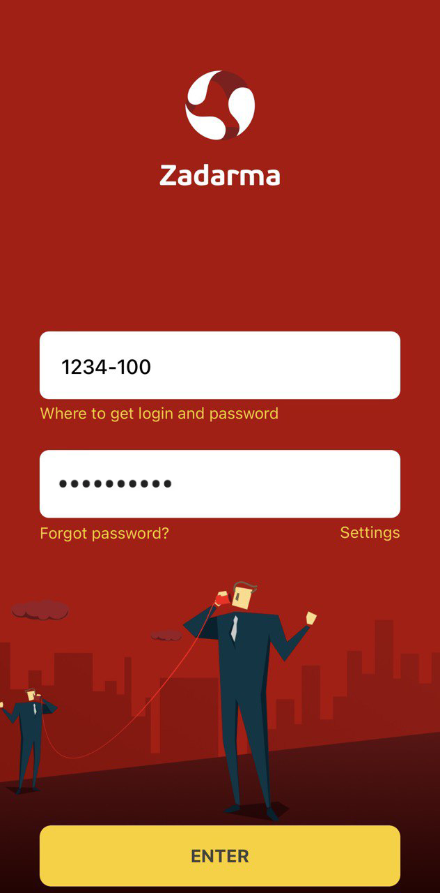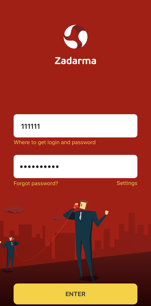 - Receive and make calls via SIP or Zadarma cloud PBX;