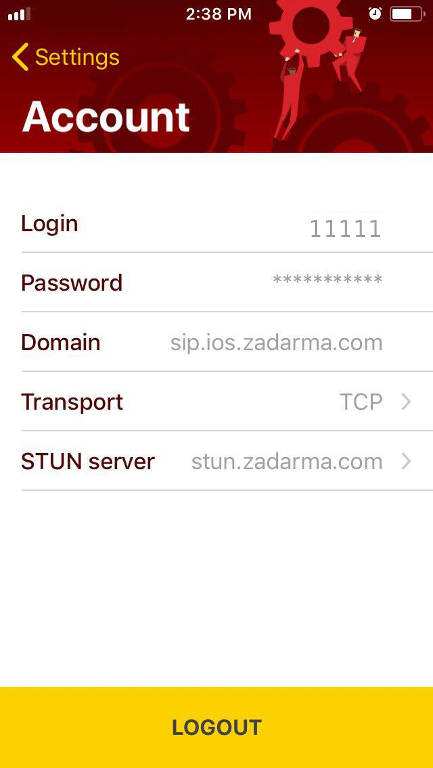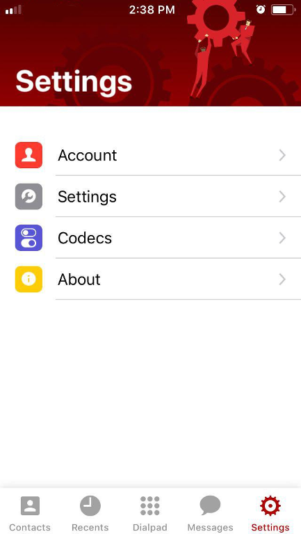 5. You can select the Server Port and Transport in the "Settings - Accounts" section. For example, in Southeast Asia internet providers might block standard VoIP ports, in which case you can use port 5065.