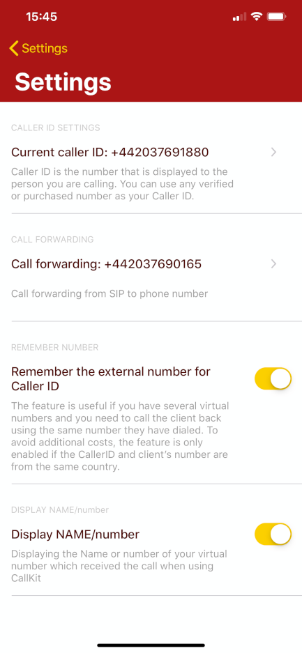 This feature allows to display the name/number of the virtual number which is receiving an incoming call when using CallKit. If caller’s number is saved in your contacts, the name will be displayed.