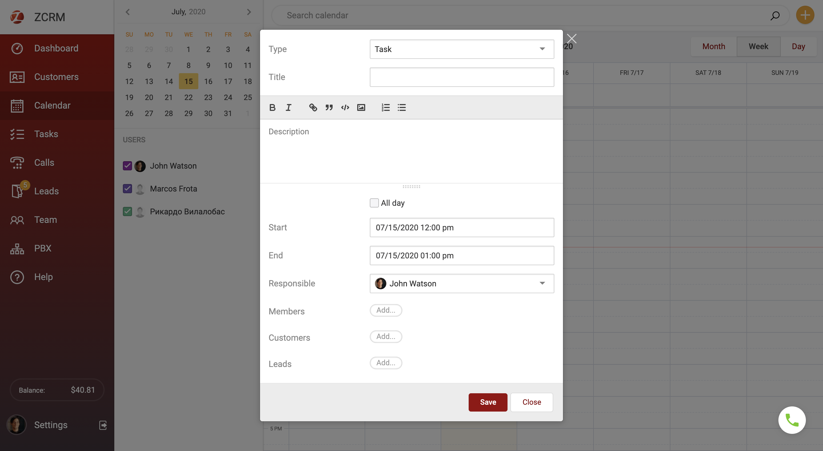 - Why CRM needs a calendar? What events can be added there?